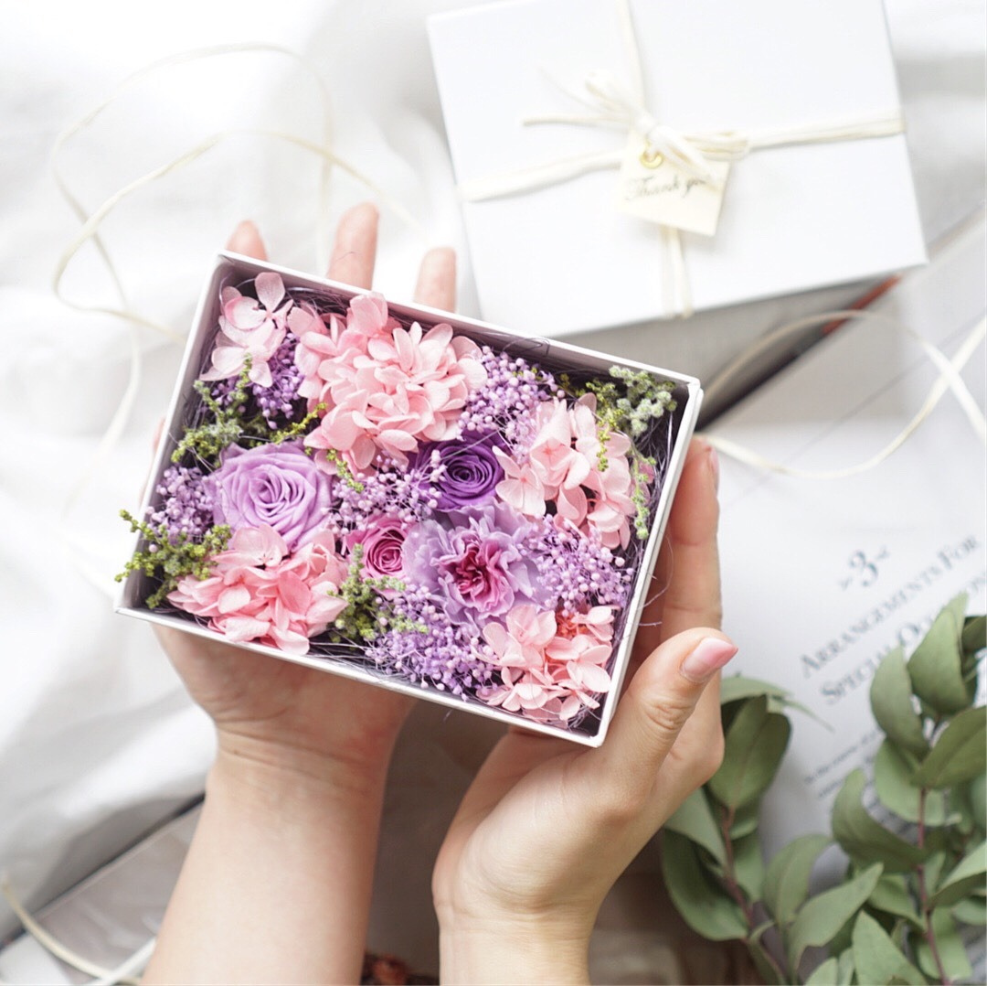 長く、その美しさを楽しんで頂けるプリザーブドフラワーをぎゅっと詰め込んだフラワーBOX。
