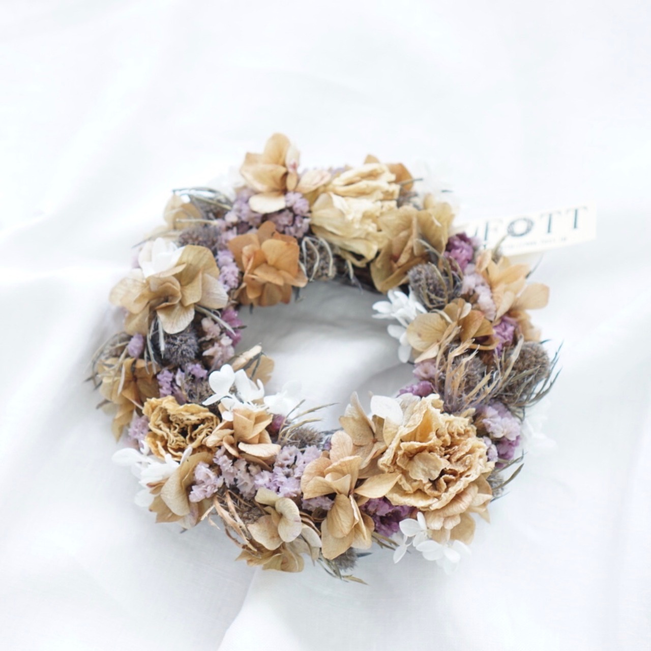 アンティークカラーのプリザーブドフラワーを使用した、ナチュラルでシックな、季節を問わず飾って頂ける人気のリースです。